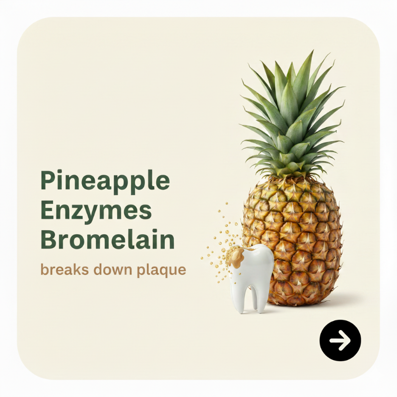Bromelain breaks down teeth plaque and is a natural teeth stain remover. It's anti-inflammatory properties help fight gum inflammation and promote healthy gums